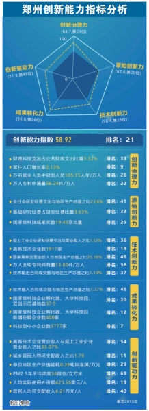 - 國家創(chuàng)新型城市創(chuàng)新能力鄭州排全國第21位