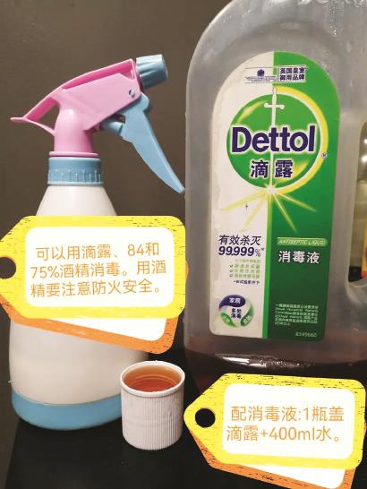那么,可以馬上把物資搬回家嗎?且慢!請把消毒水放在家門口,所有物品進屋前要消毒,并靜置20分鐘左右,然后扔掉外包裝。