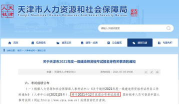 但是天津市人力資源和社會保障局在7月初發布的《關于天津市2021年度一級建造師資格考試報名等有關事項的通知》顯示,一建成績將在12月底在中國人事考試網進行公布。