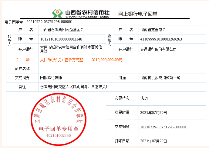災害無情,汾酒有愛。汾酒與全國人民一起全力支援災區防汛救災工作。我們堅信,在黨中央的堅強領導下,在全國人民的強力支持下,只要堅定信心、同舟共濟、共克時艱,定能打贏防汛抗洪搶險救災這場硬仗,衷心企盼受災同胞早日恢復生產生活。