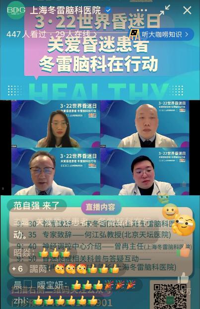 為響應(yīng)中國醫(yī)師協(xié)會(huì)神經(jīng)修復(fù)分會(huì)昏迷與促醒學(xué)組、中國神經(jīng)科學(xué)學(xué)會(huì)意識(shí)與意識(shí)障礙分會(huì)、中國康復(fù)醫(yī)學(xué)學(xué)會(huì)顱腦創(chuàng)傷康復(fù)委員會(huì)的號(hào)召,上海冬雷腦科醫(yī)院舉行“關(guān)愛昏迷患者,冬雷腦科在行動(dòng)”的公益活動(dòng),包括線上直播公益講座,線上昏迷患者M(jìn)DT義診等。