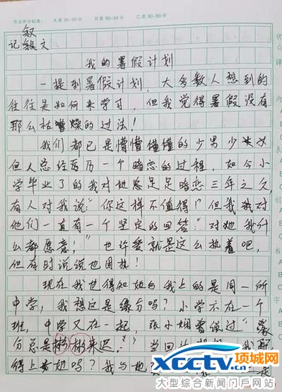 男生寫霸氣早戀作文 老師神點評走紅網絡