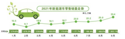 - 9月新能源車銷量同比增兩倍 滲透率超過20%
