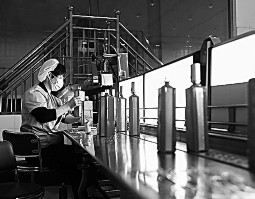 隨著氣溫降低,河南省寶豐縣的白酒生產(chǎn)企業(yè)進入釀酒繁忙期。當(dāng)?shù)鼐破蟀凑辗沁z白酒釀造技藝,以高粱為原料,大麥、小麥、豌豆混合制曲,采用“清蒸二次清”工藝,地缸發(fā)酵,釀制白酒,廠區(qū)內(nèi)一派繁忙。圖為日前在河南省寶豐縣一家酒企,工人在包裝車間忙碌。