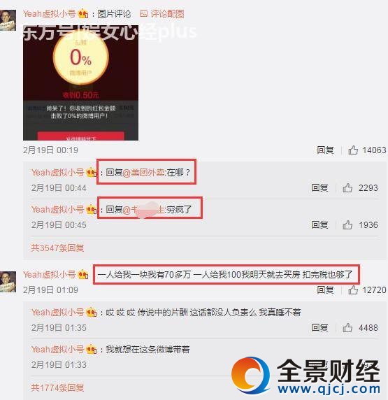 甚至還出了一條讓人不忍直視的“金句”:一人給我1塊我有70多萬,一人給我一百我明天就去買房,扣完稅也夠了。