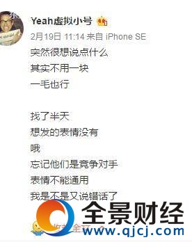 不知道在想什么,昨日凌晨發了微博哭窮要紅包之后,十一點多的時候又來發了一條,說是一人不用發一塊,哪怕是一人發一毛也行。。.
