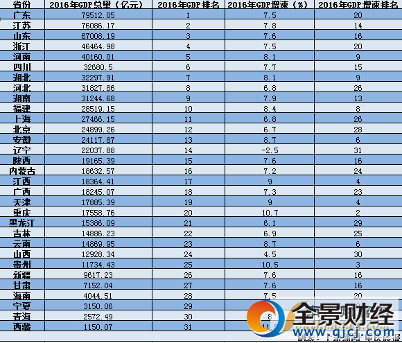 31省市區(qū)GDP出爐:2016年全國31省市區(qū)GDP排名匯總 你的家鄉(xiāng)名列第幾?