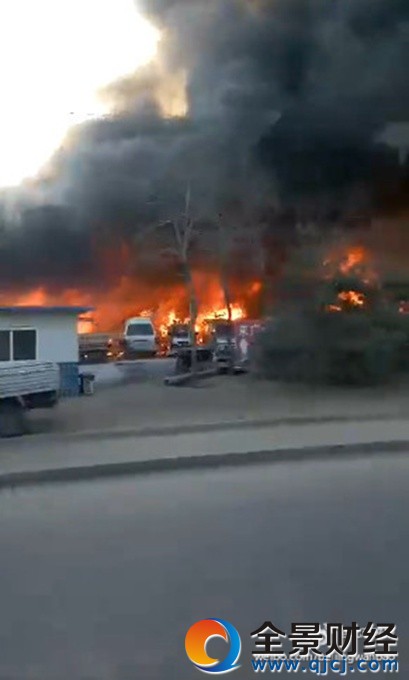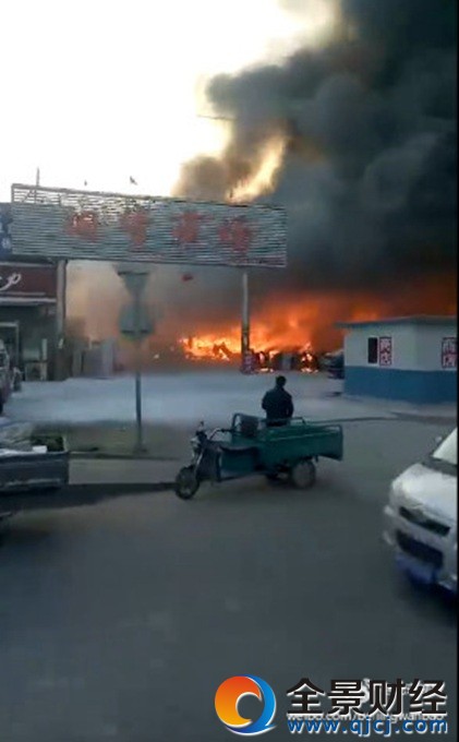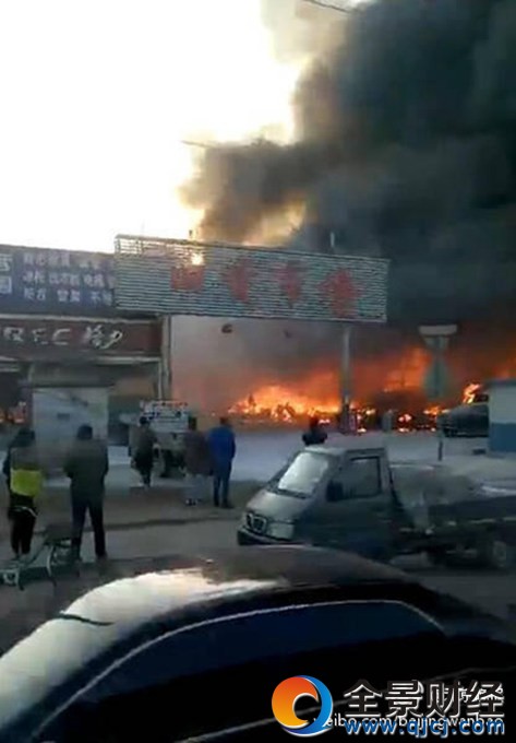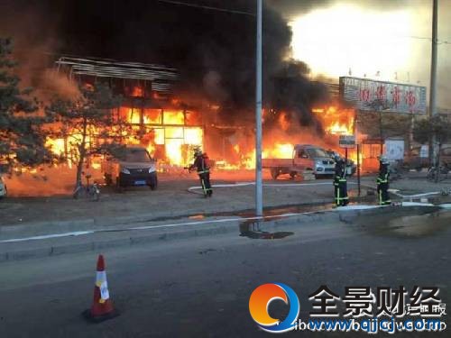 北京來廣營萬通市場火災現場 33部消防車奮力撲救濃煙火光遮目