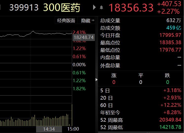 此外,滬深300醫藥衛生指數(399913)今日上漲2.27%。