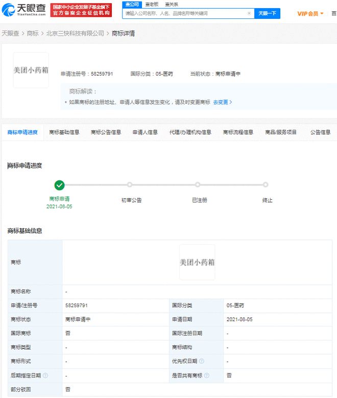 天眼查App顯示,近日,美團關聯公司北京三快科技有限公司再次申請注冊“美團小藥箱”商標,國際分類為醫藥,目前商標狀態為申請中。值得一提的是,該公司曾于2020年5月及10月,申請過醫藥、家具類“美團小藥箱”商標,但均被駁回復審。