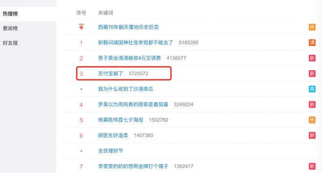 8月14日消息,今日,有許多網友反映支付寶頁面進不去或者進去了沒反應,隨后話題“支付寶崩了”登上微博熱搜第三名。
