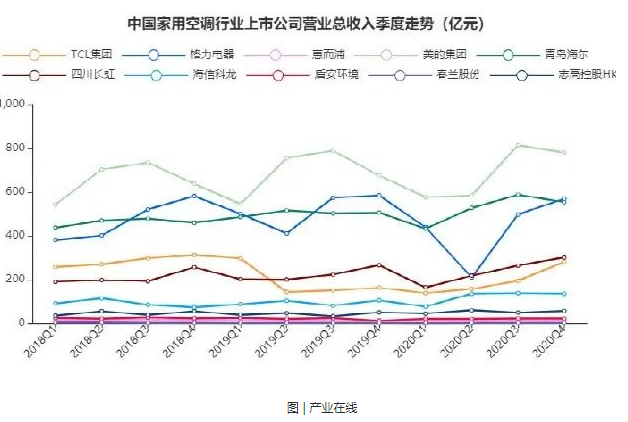 2021年上半年,格力電器實現營收911億元,同比增長31%。但高增長主要得益于2020年同期極低的基數。2020年上半年,格力電器僅實現營收695億元,相比于2019年同期下降了29%。在各大上市家電企業中,格力電器受疫情沖擊異常的大。