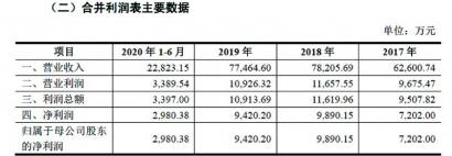 據招股書披露,2017年至2019年運機股份營業收入分別為6.26億元、7.82億元、7.75億元,其中2018年、2019年分別同比增長24.92%、-1%;同期凈利潤分別為7202.00萬元、9890.15萬元、9420.20萬元。其中2018年、2019 年 分 別 同 比 增 長37.32%、-4.75%。不難看出,公司2018年業績表現良好,凈利增速明顯高于營收增速。但進入2019年后,公司營業收入、凈利潤出現雙降,其中凈利潤下滑幅度明顯高于營業收入下滑幅度。2020年上半年,公司實現營業收入、凈利潤分別為2.28億元、2980萬元,分別占2019年全年的29.41%、31.63%。有分析指出,公司所屬行業不存在明顯季節性,從2020年公司上半年經營情況來看,全年業績恐將出現加速下滑態勢。
