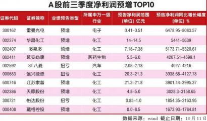 另外,根據(jù)滬深交易所公布的預(yù)約時間表,將有9家上市公司將在10月12日正式披露三季報,將正式拉開 A股三季報披露大幕。上述9家公司分別為金晶科技、森麒麟、潛能恒信、舒泰神、青島中程、旗濱集團、中信特鋼、雙星新材、寶鼎科技。其中,雙星新材預(yù)計前三季度公司實現(xiàn)凈利潤9.46億元至9.68億元,同比增長110%至115%。