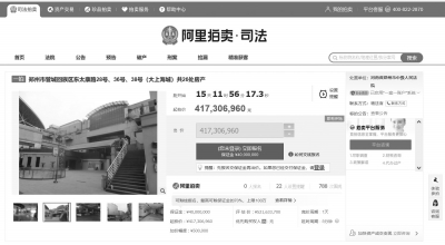 拍賣標的為鄭州市管城回族區東太康路28號、36號、38號(大上海城)共26處房產。起拍價為41730.696萬元,保證金4000萬元,增價幅度50萬元。