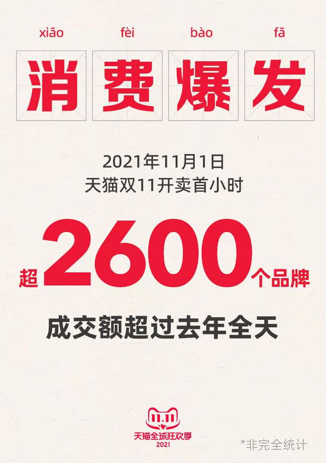 據不完全統計,開售首小時,超2600個品牌的成交額超過去年全天。