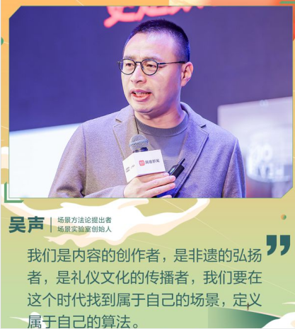 在吳聲看來,社交網(wǎng)絡(luò)與技術(shù)進化帶來的創(chuàng)作自由才剛剛開始。只有擁抱隨機不確定性,讓社群去定義品牌共建,構(gòu)建新周期的新品牌。他談到,所有的內(nèi)容、品牌、空間,所迎來的新一輪造物風潮,恰恰是因為顆粒度的場景被這個時代的算法所驅(qū)動,我們是內(nèi)容的創(chuàng)作者、是非遺的弘揚者、是禮儀文化的傳播者。找到屬于自己的場景,定義屬于自己的算法,只有在算法一次又一次的優(yōu)化、糾偏、調(diào)校,在數(shù)據(jù)和用戶反饋的過程中,那種顆粒度的栩栩如生,才會成就這個時代的“方知書畫我來同”。