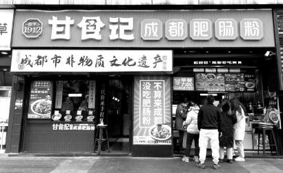 據(jù)大眾點(diǎn)評(píng)統(tǒng)計(jì)數(shù)據(jù)顯示,成都小吃快餐數(shù)10萬家,大多以夫妻店為主。甘樂說,甘食記最好吃的,無疑是肥腸粉。