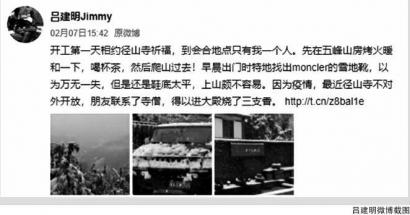 前前后后修改了5次,相關微博依然受到了網友熱議。因為在疫情期間,杭州部分寺廟一直處在封閉狀態,包括此次呂建明前往的徑山寺,也剛在2月4日發出了“繼續實行‘雙暫停’”的通知,即暫停開放場所、暫停一切集體宗教活動。