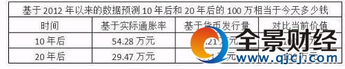 基于2012年年底以來的數(shù)據(jù)預(yù)測(cè):根據(jù)中國(guó)人民銀行公布的數(shù)據(jù),計(jì)算出來2012年底以來中國(guó)的廣義貨幣供應(yīng)量的年增長(zhǎng)率約為13.9%,我們不妨來預(yù)測(cè)一下,現(xiàn)在的100萬元,10年后和20年后分別相當(dāng)于今天的多少錢。