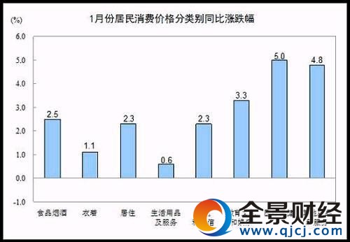 2017年1月份,全國(guó)居民消費(fèi)價(jià)格總水平同比上漲2.5%。其中,城市上漲2.6%,農(nóng)村上漲2.2%;食品價(jià)格上漲2.7%,非食品價(jià)格上漲2.5%;消費(fèi)品價(jià)格上漲2.2%,服務(wù)價(jià)格上漲3.2%。