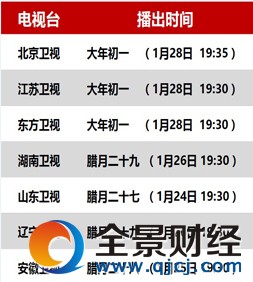 各衛(wèi)視春晚播出時間表