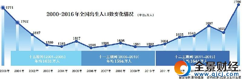 根據國家統計局發布的1‰抽樣調查推算數據,去年全年出生人口達到1786萬人;根據衛生計生統計數據,2016年全年住院分娩活產數為1846萬人。