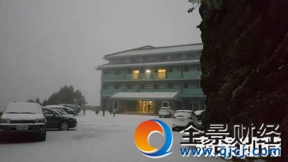 合歡山清晨飄雪了,合歡山松雪樓變成銀白世界。