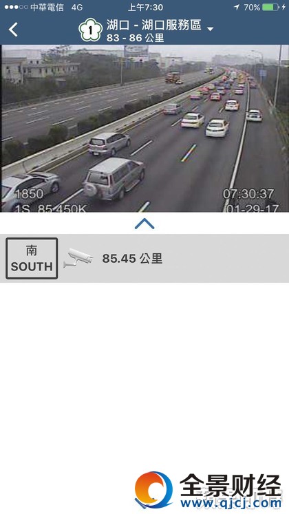 今天上午7時許,根據高速公路1968即時路況顯示,國1南下湖口至竹北、國3南下大溪至龍潭,即出現「紫爆」,時速僅15~19公里龜速,國5南下石碇到坪林時速38公里,車子停停開開。