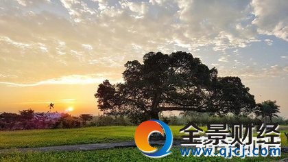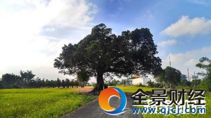 號稱「臺中金城武樹」的南屯區鎮平里「青榕公」,周遭農田景觀豐富。