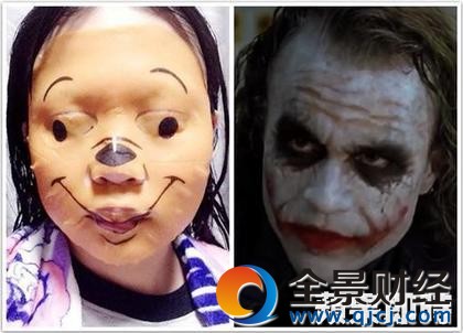 韓國的臉書粉專上,就有位女孩分享了自己與卡通面膜的自拍照,他選擇的是小熊維尼,但這維尼在他臉上好像就沒有那幺可愛,甚至有網友拿出他與小丑的對照圖,反而還有點神似,怎幺跟網路上小模的產品圖落差如此大呢?此照片在該粉專上獲得了1.4萬個讚及15000多次分享。