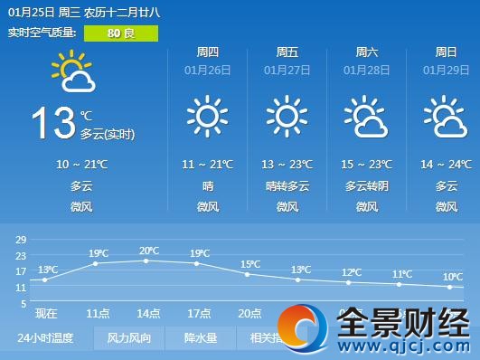2017年1月25日廣州天氣預報:多云間陰天 最高氣溫21℃