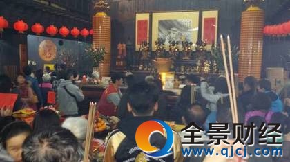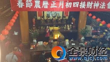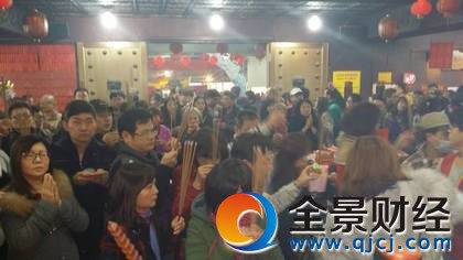 香客大排長(zhǎng)龍,走進(jìn)元寶法壇,祈求財(cái)神賜財(cái)。