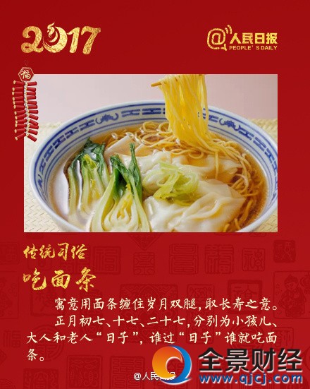 此外,一些地方在這天還有吃面條的習俗,寓意著用面條纏住歲月的雙腿,取長壽之意。此外,正月十七和正月二十七也被視為“人日子”。正月初七,十七,二十七,此三天分別為小孩兒,大人和老人的“日子”,誰要過“日子”就要吃面條。