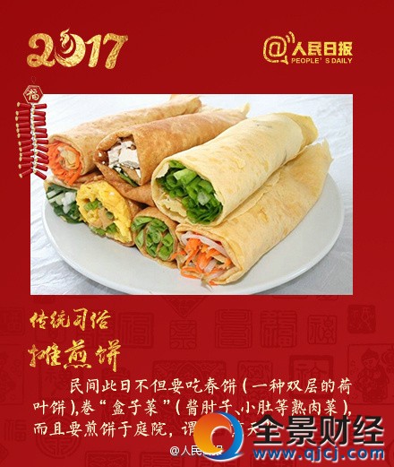民間此日要吃春餅卷“盒子菜”,并在庭院攤煎餅,“熏天”。