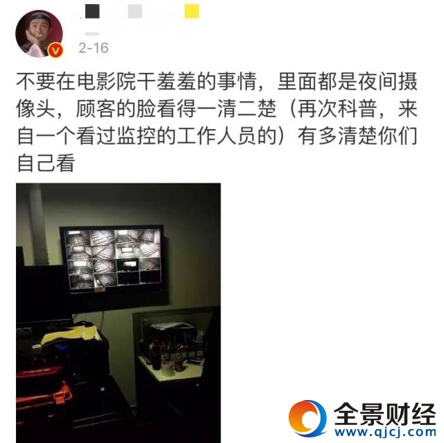 有網友還附上了據說是影院工作人員提供的監控室場景和監控截圖,果然除了大屏幕外,放映廳內各個位置都看得清清楚楚,也拍到了觀眾一些不雅的坐姿和動作。“電影院幾乎在每個角落都設置了紅外線夜視攝像頭,還是360度無死角的。”有網友說。