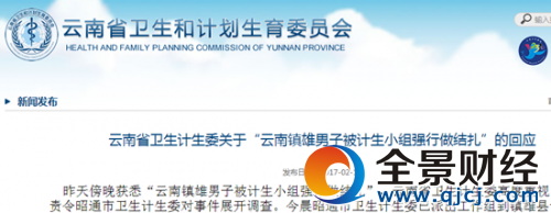 原標(biāo)題:云南衛(wèi)計(jì)委調(diào)查“鎮(zhèn)雄男子被計(jì)生小組強(qiáng)行做結(jié)扎”