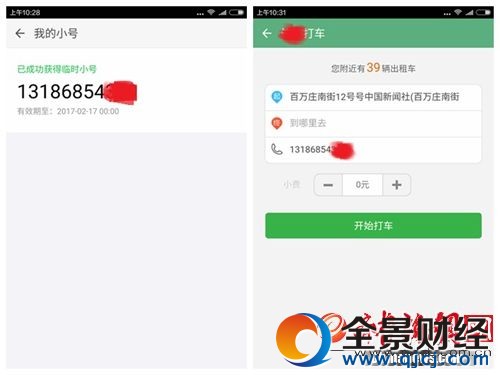 中新網(wǎng)在體驗(yàn)手機(jī)小號(hào)的過(guò)程中發(fā)現(xiàn),該款軟件直接集成了打車功能,可用來(lái)叫網(wǎng)約車。