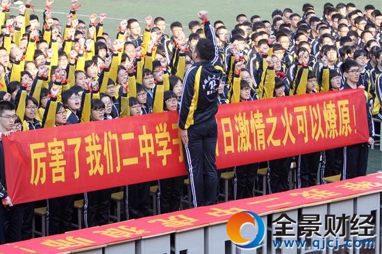 衡水二中高考百日誓師大會和往年一樣,場面壯觀。全體高三學生高舉右拳,進行了莊嚴的宣誓,“沖刺百天,卓立巔峰;決戰百天,我必成功……”,嘹亮的口號聲震天動地,表達了高三學生誓創2017年高考奇跡的必勝信念。高三各學科備課組長上臺表態,將竭盡全力為高三學子保駕護航。高三全體老師也進行了莊嚴宣誓,他們向學生和家長鄭重承諾,在沖刺高考的最后一百天一定不辭辛苦,全力以赴,陪伴學生迎戰高考,圓夢一七。