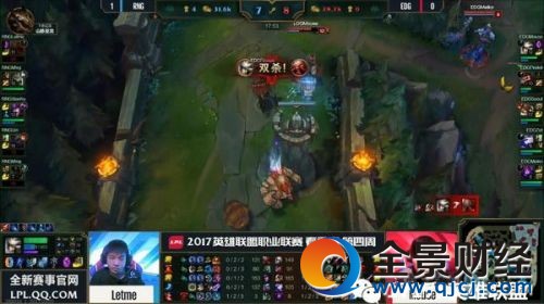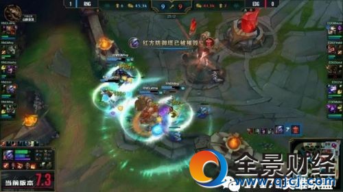 RNG被EDG逼回中路塔,獅子狗開啟大招,酒桶傳送下來。將EDG陣型逼散,酒桶E閃大招將EDG陣型完全擊潰,收掉EDG兩人,推掉了中路高地塔。EDG想要富貴險中求開啟大龍,RNG趕過來,男槍血線太低也只好撤退。RNG目前領先EDG約3K的經濟。