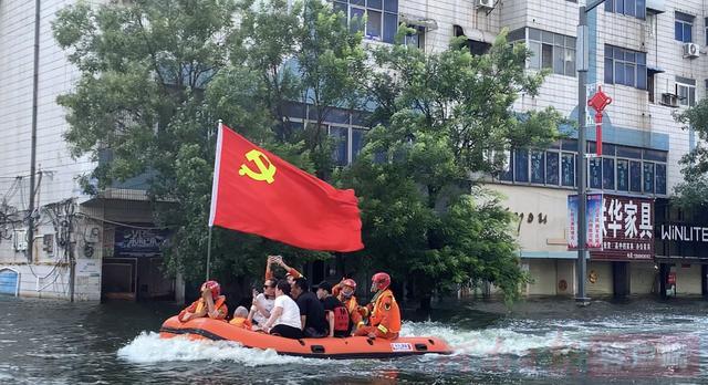 他們在水中筑起“人墻” 將洪水擋住保全小區車輛