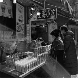 田子坊地方并不大,但小巷林立交錯,每拐過一個路口,都能看到截然不同的風(fēng)景,也許是僻靜的民居院墻,也許是一家創(chuàng)意小店。雖然咖啡廳和各種小店很多,但來到田子坊的游客明顯對老上海的弄堂文化和特色美食更感興趣,在石庫門前拍照打卡,再來上一碗上海特色老豆花或者菜飯,最后打包帶走一份奶香味濃郁的老上海特色手工蛋卷。走累了可以在長椅上坐一會兒,抬頭可以看到老上海弄堂特有的縱橫交織的電線,屋頂上也許有一只貓正在舒服地曬太陽,旁邊的窗戶正好打開,一根老式的晾衣桿伸了出來,是本地的住戶在曬衣服。
