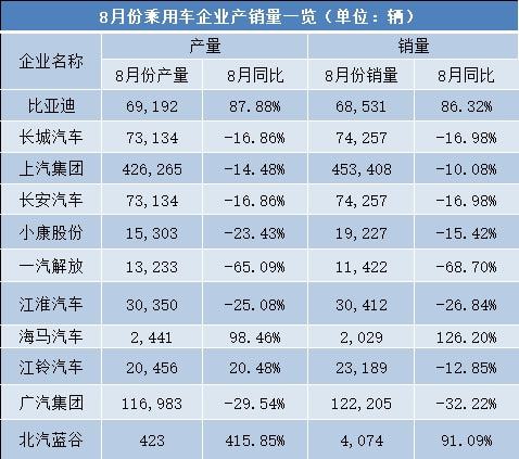 - A股上市乘用車企前8個月產銷量出爐 比亞迪