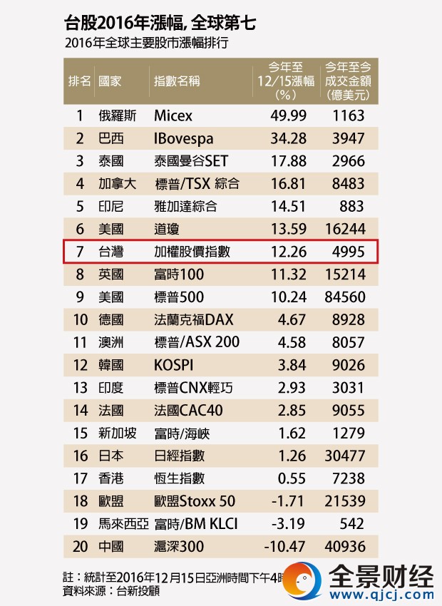 關(guān)鍵數(shù)字1:臺(tái)股漲幅全球第7