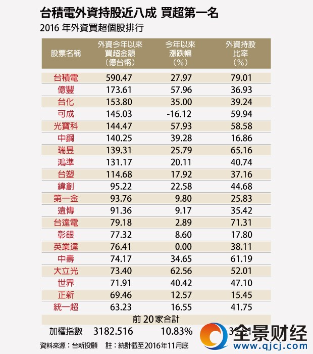 關(guān)鍵數(shù)字3:臺(tái)積電持股近8成是外資