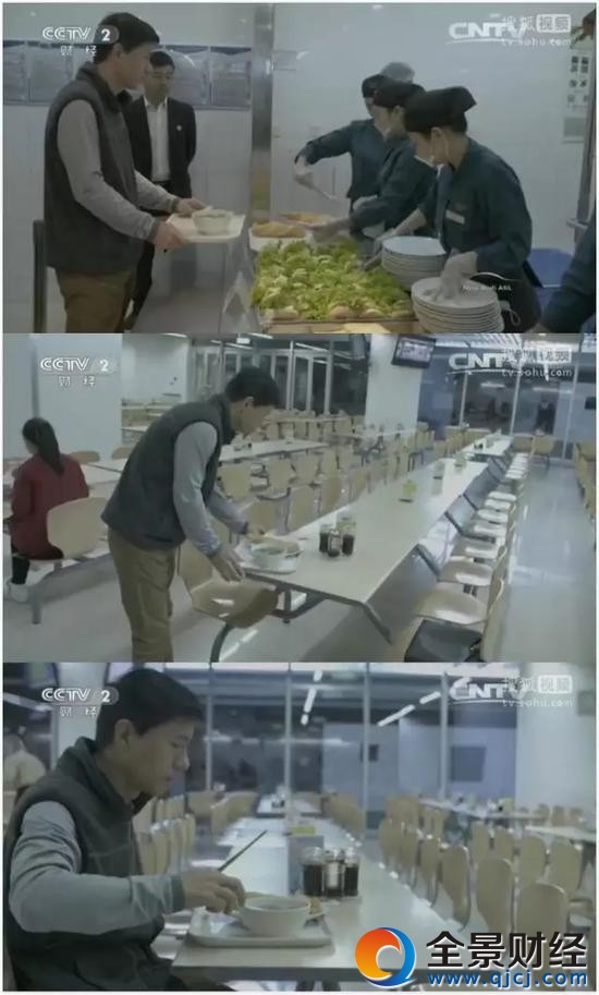 在央視的紀錄片《你從哪里來》節(jié)目中,也有一段王健林在公司用員工餐的畫面。這一次,他吃的是西葫蘆雞蛋的餃子,盤子里掉落的餡料一點也沒浪費。