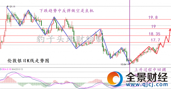 昨日白銀價(jià)格收盤十字星,銀價(jià)小幅回落后又迅速形成反彈,在當(dāng)前走勢(shì)已經(jīng)反轉(zhuǎn)的基礎(chǔ)上,行情回調(diào)空間預(yù)計(jì)較小,近期銀價(jià)仍有繼續(xù)上行空間。由于目前整體走勢(shì)處于上漲格局,因此投資者務(wù)必堅(jiān)持以做多思路為主,最佳策略仍然是分批布局多單,激進(jìn)者可直接采取分批3~4分加倉一次的方式進(jìn)場(chǎng),在銀價(jià)突破頸線位置后,下一阻力將看至17.7附近的壓力,其次將是18.35、19、19.8幾線。