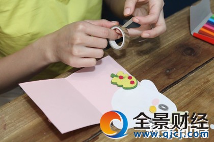郭書瑤利用彩色膠帶和立體飾品,做卡片裝飾。彭欣偉攝