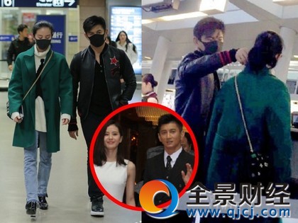 吳奇隆(右)出關前推著隨有行李,劉詩詩步伐輕快。翻攝娛七爺微博