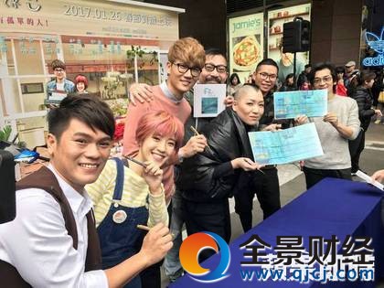 魏德圣(右二)發(fā)送巧克力及熱飲給粉絲。吳翊緁攝